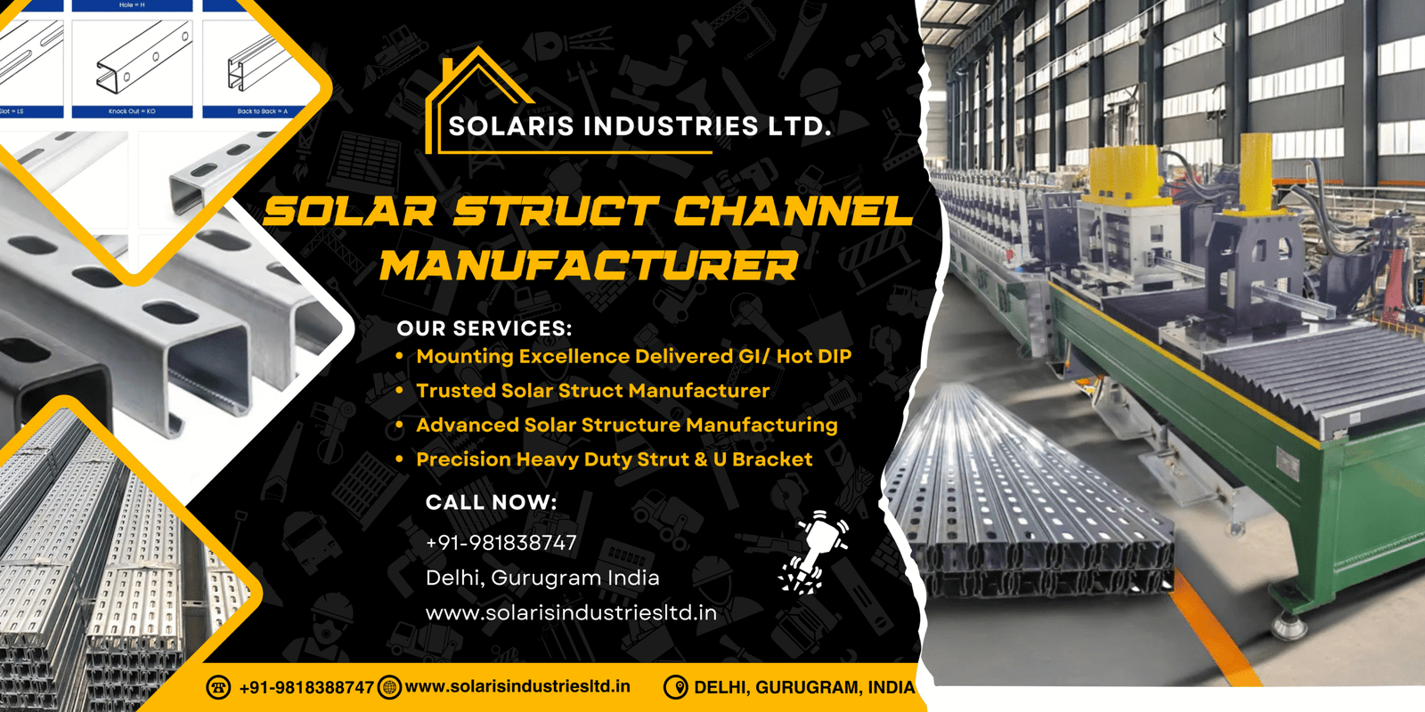 Solaris Industries Ltd. is recognized as one of India’s most trusted Solar Strut Channel Manufacturers and Structural Fabrication Experts, offering engineered solutions for solar mounting systems, commercial rooftops, industrial sheds, and utility-scale solar power projects. Our expertise lies in manufacturing world-class strut channels, support brackets, module mounting structures, C & U channels, purlins, and custom structural profiles using advanced roll forming technology and automated fabrication processes.